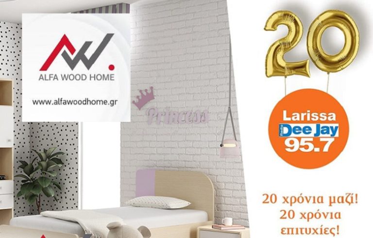 Ο 95.7 Larissa DeeJay γιορτάζει 20 χρόνια και σας χαρίζει πλούσια δώρα κάθε εβδομάδα από τις 2 Νοεμβρίου έως τις 6 Δεκεμβρίου 2020. To αγαπημένο ραδιόφωνο της πόλης, σας ευχαριστεί για την αγάπη σας όλα αυτά τα χρόνια και σας προσκαλεί να γιορτάσετε μαζί του! Αυτή την εβδομάδα διεκδικείστε ένα παιδικό κρεβάτι από την Alfa Wood!