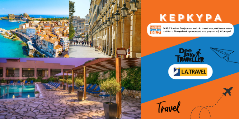 O 95.7 Larissa Deejay και το L.A.TRAVEL δίνουν την δυνατότητα σε δύο από εσάς να ταξιδέψετε 4 ημέρες για το Πάσχα, στη μαγευτική Κέρκυρα