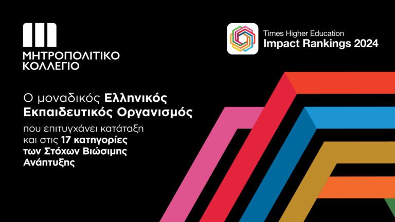 Το Μητροπολιτικό Κολλέγιο διακρίθηκε και το 2024 στα ΤΗΕ Impact Rankings