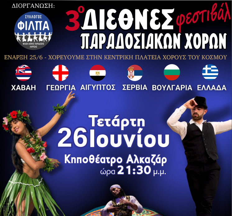 Ο Σύλλογος ΦΙΛΠΑ διοργανώνει το 3ο ΔΙΕΘΝΕΣ ΦΕΣΤΙΒΑΛ ΠΑΡΑΔΟΣΙΑΚΩΝ ΧΟΡΩΝ ΛΑΡΙΣΑΣ.