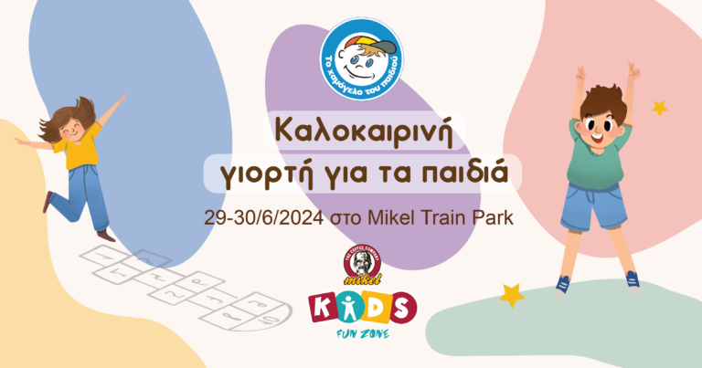 To καλοκαίρι έφτασε και είναι ευκαιρία να το γιορτάσουμε όλοι μαζί! «Το Χαμόγελο του Παιδιού» και το Mikel Kids Fun Zone σας προσκαλούν στην Καλοκαιρινή γιορτή για τα παιδιά, που θα πραγματοποιήσουν το Σάββατο 29 και την Κυριακή 30 Ιουνίου 2024, 10:00-21:00, στο συναρπαστικό χώρο του Mikel Coffee Train Park (Πλατεία ΟΣΕ), με δωρεάν είσοδο!