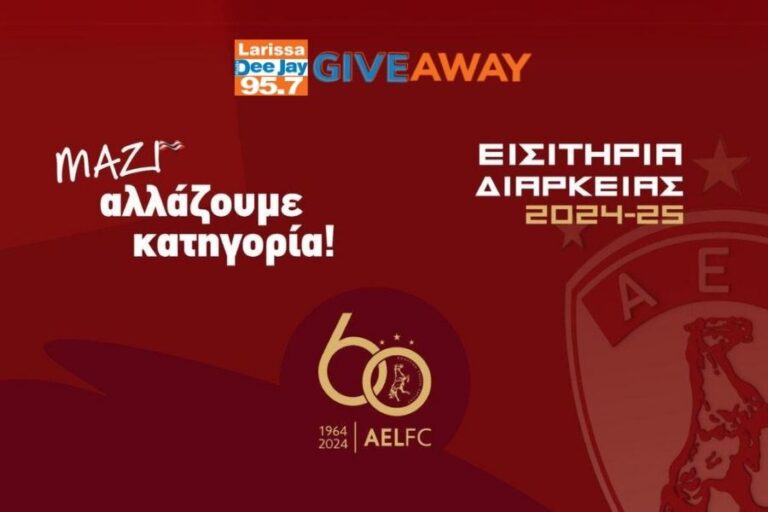 Ο 95.7 Larissa Deejay δίνει τη δυνατότητα να κερδίσετε εισιτήρια διαρκείας 2024-2025 για την ΑΕΛ