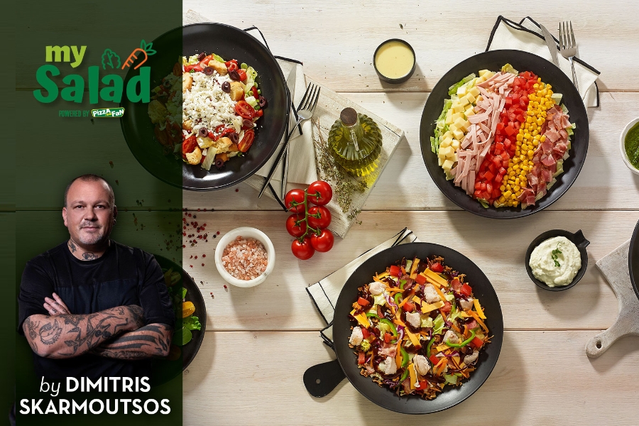 ΜΥ SALAD: Γκουρμέ σαλάτες από τον Δημήτρη Σκαρμούτσο για την Pizza Fan.