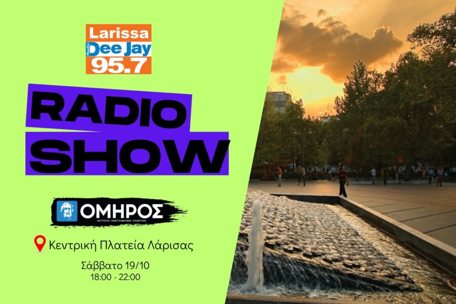 Ο 95.7 Larissa Deejay το Σάββατο, 19 Οκτωβρίου στις 18:00 θα βρίσκετε στην κεντρική πλατεία της Λάρισας μαζί με τις σχολές ‘Όμηρος σε ένα πάρτι γεμάτο μουσική, εκπλήξεις και happenings!