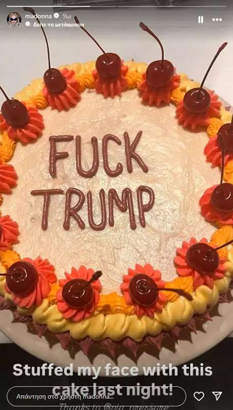 Μαντόνα: Έφαγε τούρτα με μήνυμα «Γ@@@ τον Τραμπ»