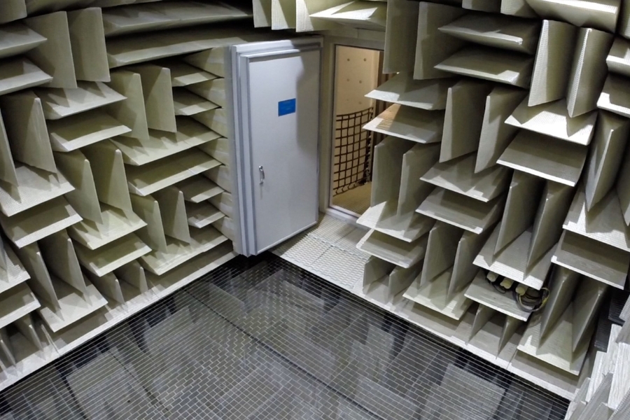 Πρόκειται για έναν ανηχοϊκό θάλαμο (anechoic chamber), σχεδιασμένο έτσι ώστε να απορροφά πλήρως τον ήχο και να μπλοκάρει κάθε εξωτερικό θόρυβο. Τα τοιχώματά του καλύπτονται από ειδικά ηχοαπορροφητικά πάνελ, ενώ το δάπεδο αιωρείται σε αντικραδασμικές βάσεις. Το αποτέλεσμα; Απόλυτη σιγή.