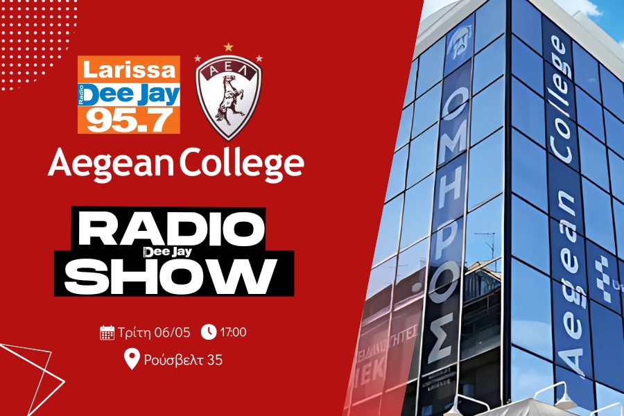 Την Τρίτη 6 Μαΐου στις 17:00 ο 95.7 Larissa Deejay θα βρίσκετε στο Aegean College (Ρούσβελτ 35) παίζοντας όλες τις επιτυχίες, εκεί θα βρίσκεται και η αγαπημένη ποδοσφαιρική ομάδα της ΑΕΛ που έκανε την Θεσσαλία περήφανη για να γιορτάσουμε όλοι μαζί την άνοδό της στην Super League 1