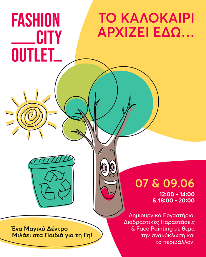 Το Fashion City Outlet νοιάζεται για το περιβάλλον και το τιμά προγραμματίζοντας δημιουργικά εργαστήρια και διαδραστικές δράσεις για τα παιδιά, στο πλαίσιο της Παγκόσμιας Ημέρας Περιβάλλοντος 5 Ιουνίου.